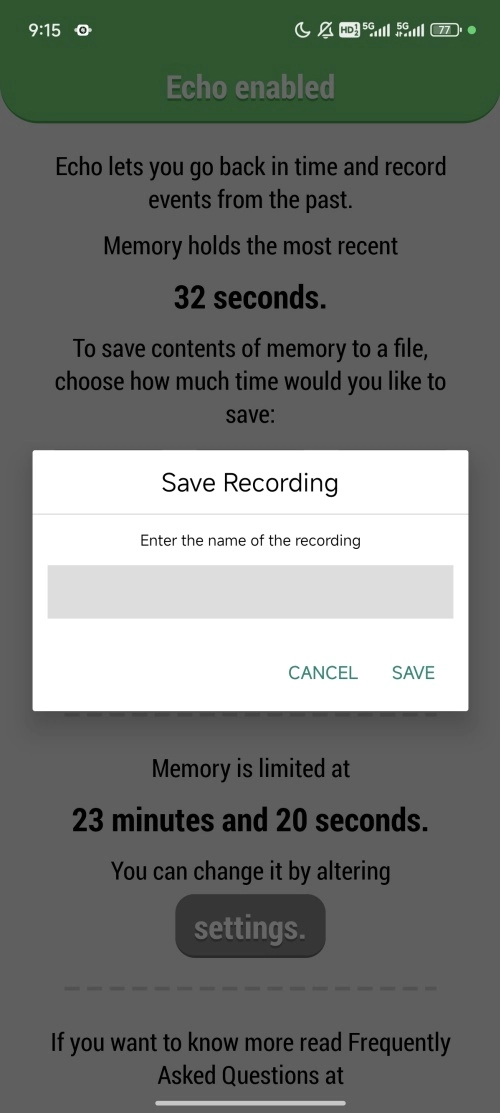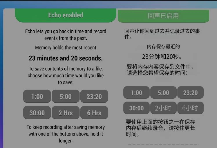 1. 点击顶部的Echo按钮,便会开始自动录音。当出现如下面图示的绿色状态(enabled)时,即表明正在录音。