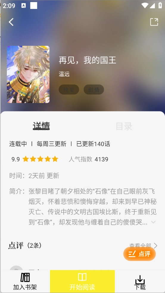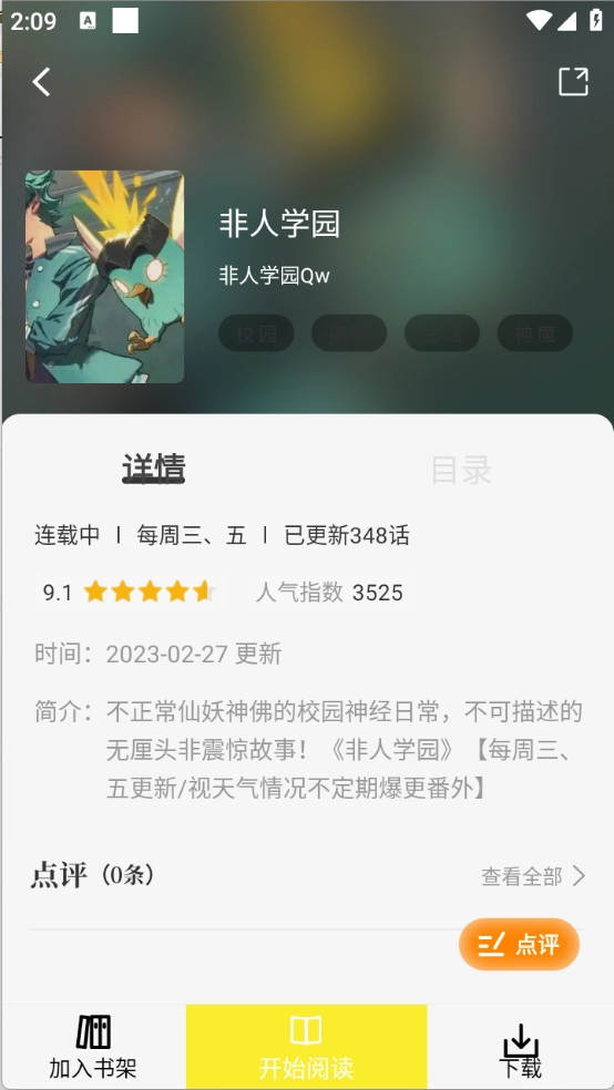 4、用户点开喜欢的漫画资源以后,可以加入书架、阅读以及。
