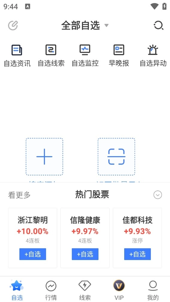 2、在自选界面下,我们可以进行查看自选资讯、进行自选监控等一系列操作。
