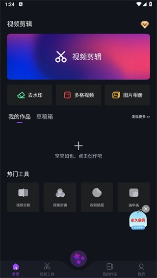 1.打开本站的AE视频剪辑,点击创作;