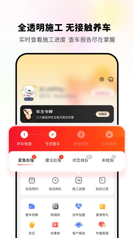 京东养车打造线上线下融合的标准化服务模式,到店服务过程全程透明。车主选购服务后,能够预约到店,并随时知晓排队情况。到店后,车主可查阅车辆档案、环检等详尽报告,报价清晰透明,让养车更安心。此外,用户还能针对门店与技师的服务予以评价,助力其他用户做出更优选择。