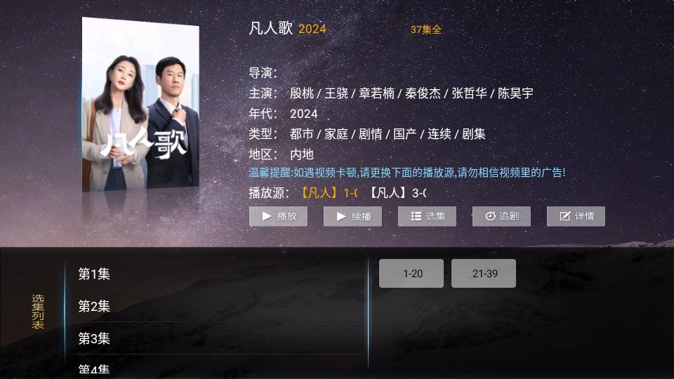 2、任意选择一部你喜欢的影视,这里以“凡人歌”为例,点击即可播放。