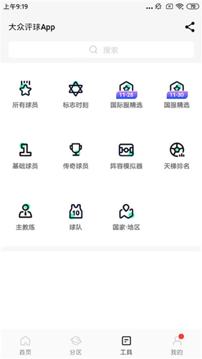 1、第一步,进入大众评球,接着点击工具,然后点击所有球员。