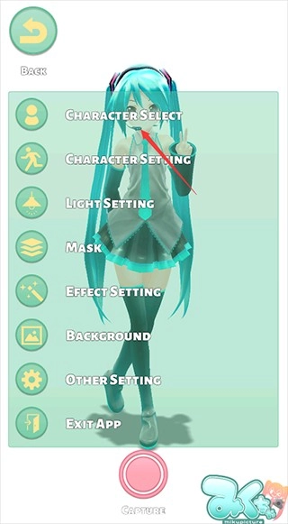 1. 开启mikuture,进入到主界面,点击位于左上角的选择按钮。