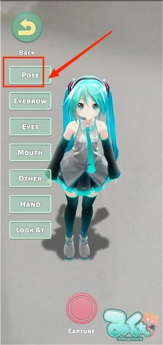 3、进入动作修改界面后,能够对角色的姿势、表情、嘴部、眼部等部位进行调整,点击“pose”即可修改动作。