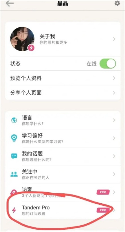 1、首先进入tandem我的界面,点击下方的tandem Pro;