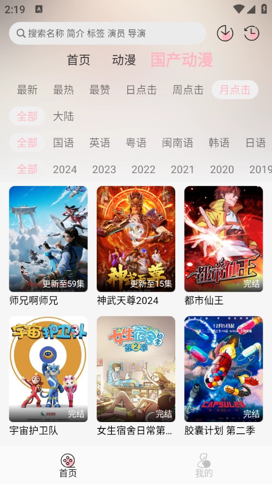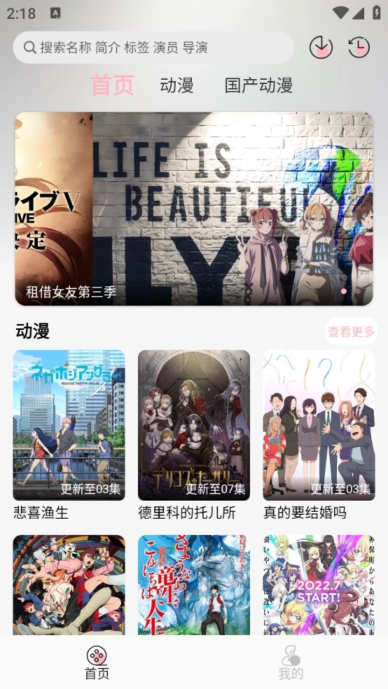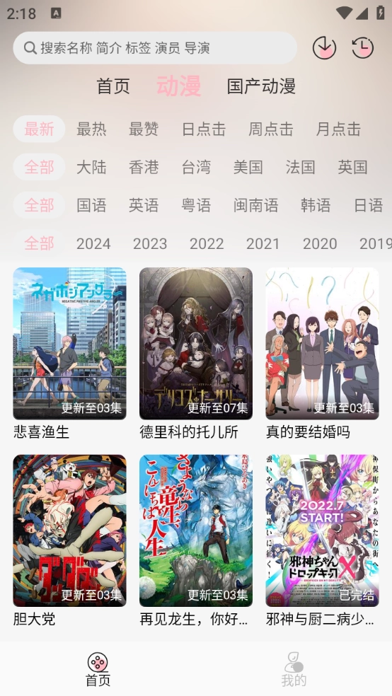 2、首页提供了超级丰富的动漫类型,日漫、韩漫以及国产动漫等。