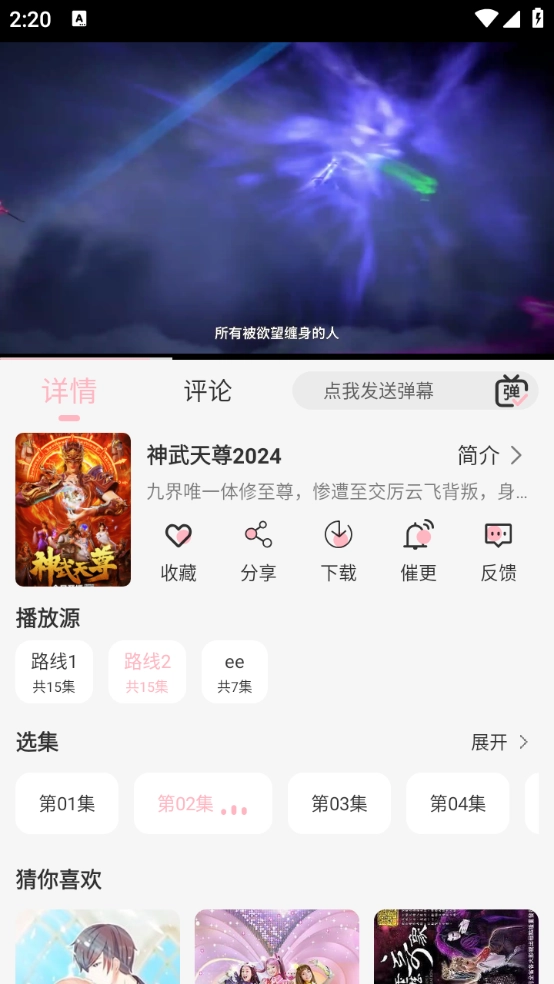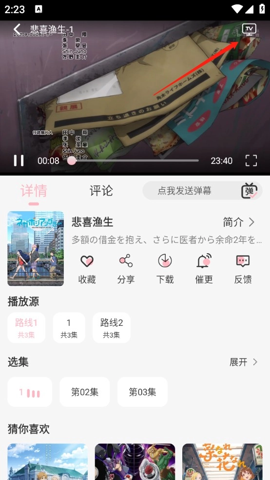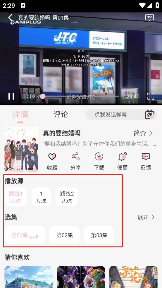 4、当你找到心仪的动漫后,只需挑选集数就能开启追番之旅啦!而且还能够切换播放源哦。