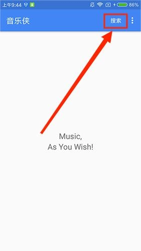 1、打开音乐侠,点击右上角的搜索功能