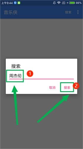 2. 在弹出的框体中,输入想要搜索的歌手名称或者歌曲名称,之后点击搜索按钮。