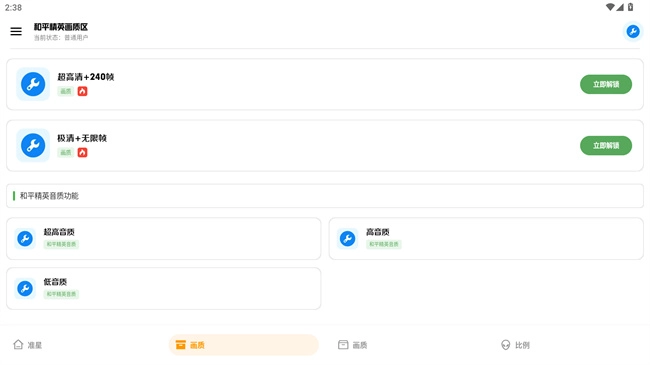 1、先在软件首页选择画质进入