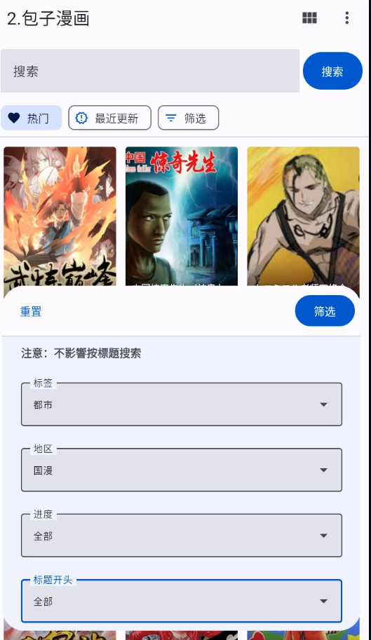 3、可以点击筛选挑出自己喜欢的漫画类型;