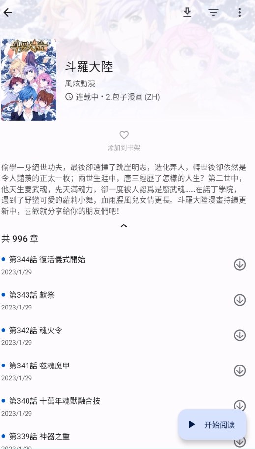 5、进入漫画详情页面,然后点击开始阅读;