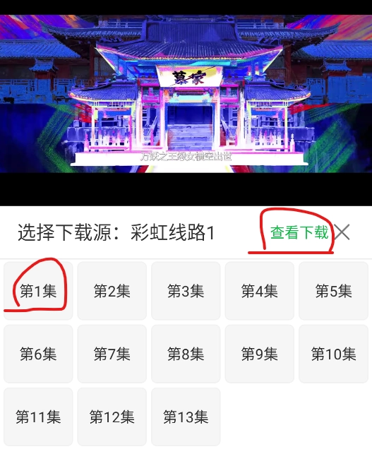 2、点击想要的集数,例如第1集,然后点击左上角的查看