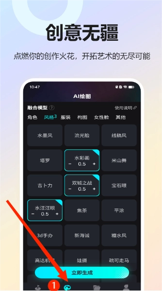 1、【AI创作】尽情释放你的想象力,输入图片主体,融入你心仪的创作风格,一键即可生成画作,让你无拘无束的灵感幻化为极为逼真的画面。