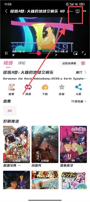 2. 接下来进入动漫播放界面,点击右上角的“tv”标志就能进行投屏。