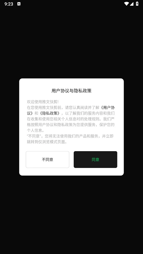 1. 首先在本站安装推文快剪,并查阅相关用户协议与隐私政策。