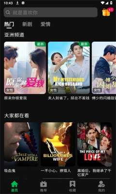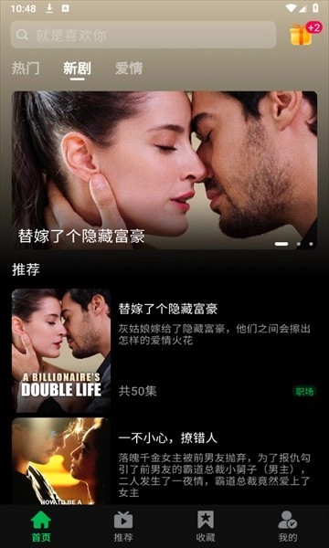 2、首页滑动接口选择喜欢的短剧或直接在搜索框一键搜索。