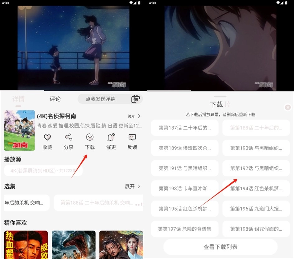 在若雪4K中找到你想的影片或剧集,点击进入其播放界面。