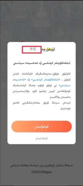 1、打开软件,页面弹出了语言系统设置页面,点击“中文”按钮;