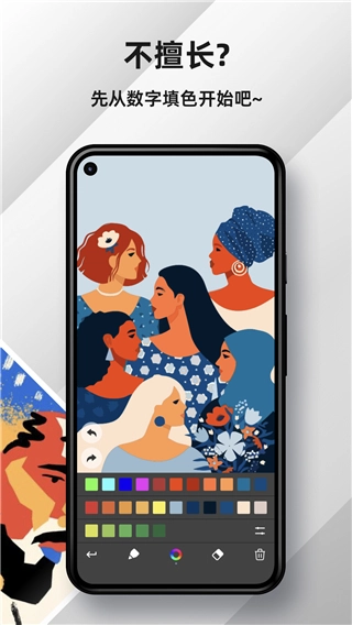1. 喜爱绘画的用户能够直接使用各类绘画工具,在此找到契合自身的风格进行创作。