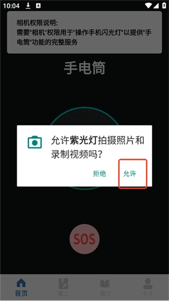 2.授予权限后即可打开手电筒