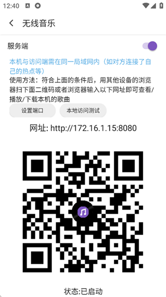 注意:本机和访问端必须处于同一局域网环境中。(例如,对方连接了本机热点,或者双方连接同一个wifi等情况)
