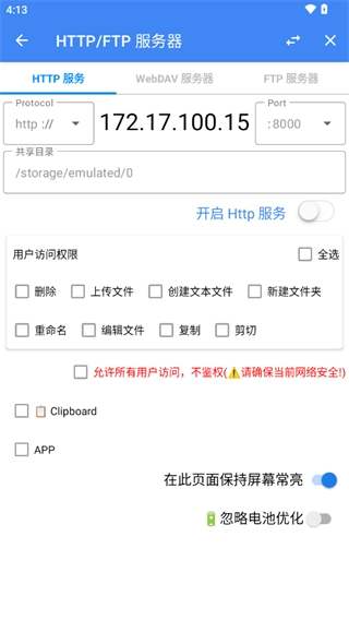 5、亦或是开启WebDAV服务器,使其与电脑设备建立连接。