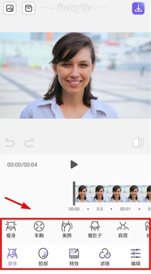 prettyup修图软件免费版瘦身怎么用