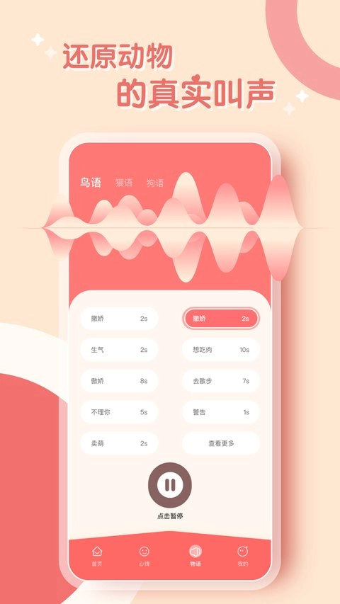 情感识别功能:借助声音的频率、音调等特性,来判断动物的情感状态,助力人们更深入地理解并满足动物的情绪需求。