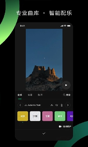 3、非常丰富的只能曲库都会在这里更新,让用户第一时间找到最为适合的剪辑手法。