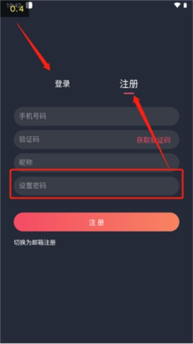 4.没有则点击注册,输入手机号+验证码,即可注册成功。