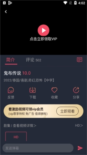 4、登录完成后,大家可以选择自己喜欢的内容去观看,点击立即领取VIP就可以免费观看了。
