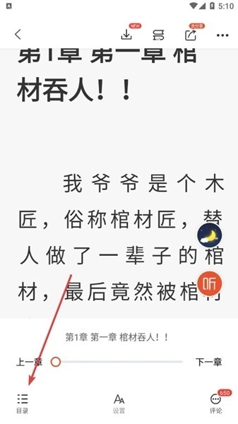 2、在弹出的功能里,选择进入左下角的目录按钮。
