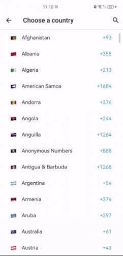 2、向下滑动找到租车电话号码的归属国家,选中确认。