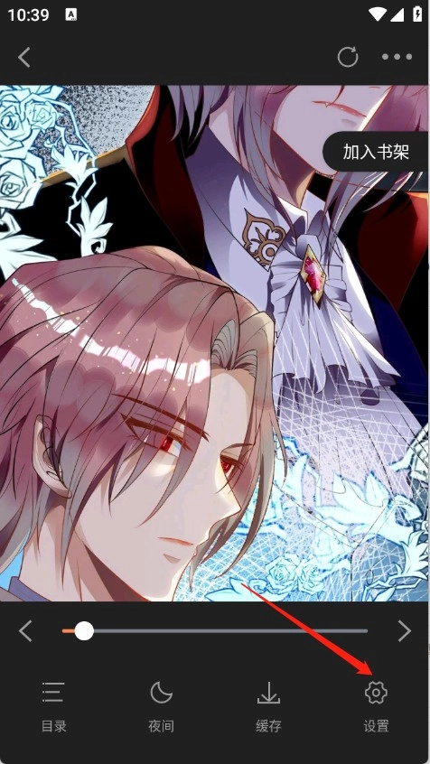 1、进入漫画阅读页面后,点击屏幕任意一处,再点击底部栏的设置。