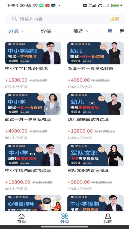 1. 各类课程均已分类,能便捷地挑选出自己所需课程。