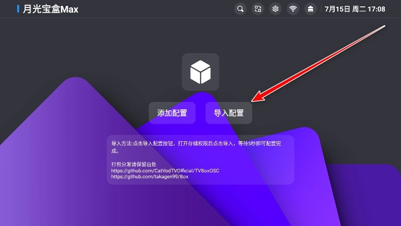 1.首先安装最新版本的月光宝盒max(MBox),然后点击导入配置按钮。