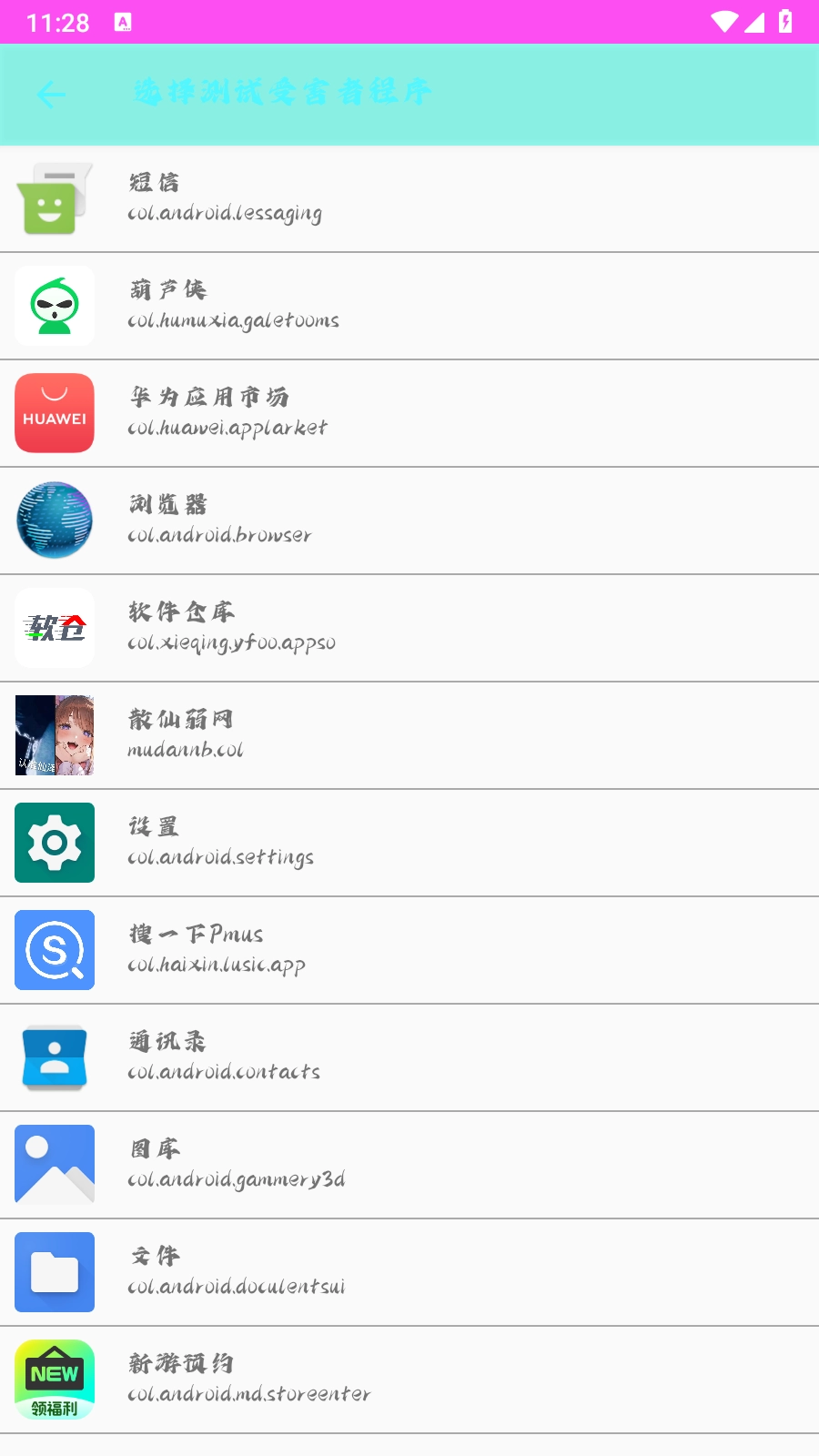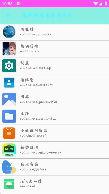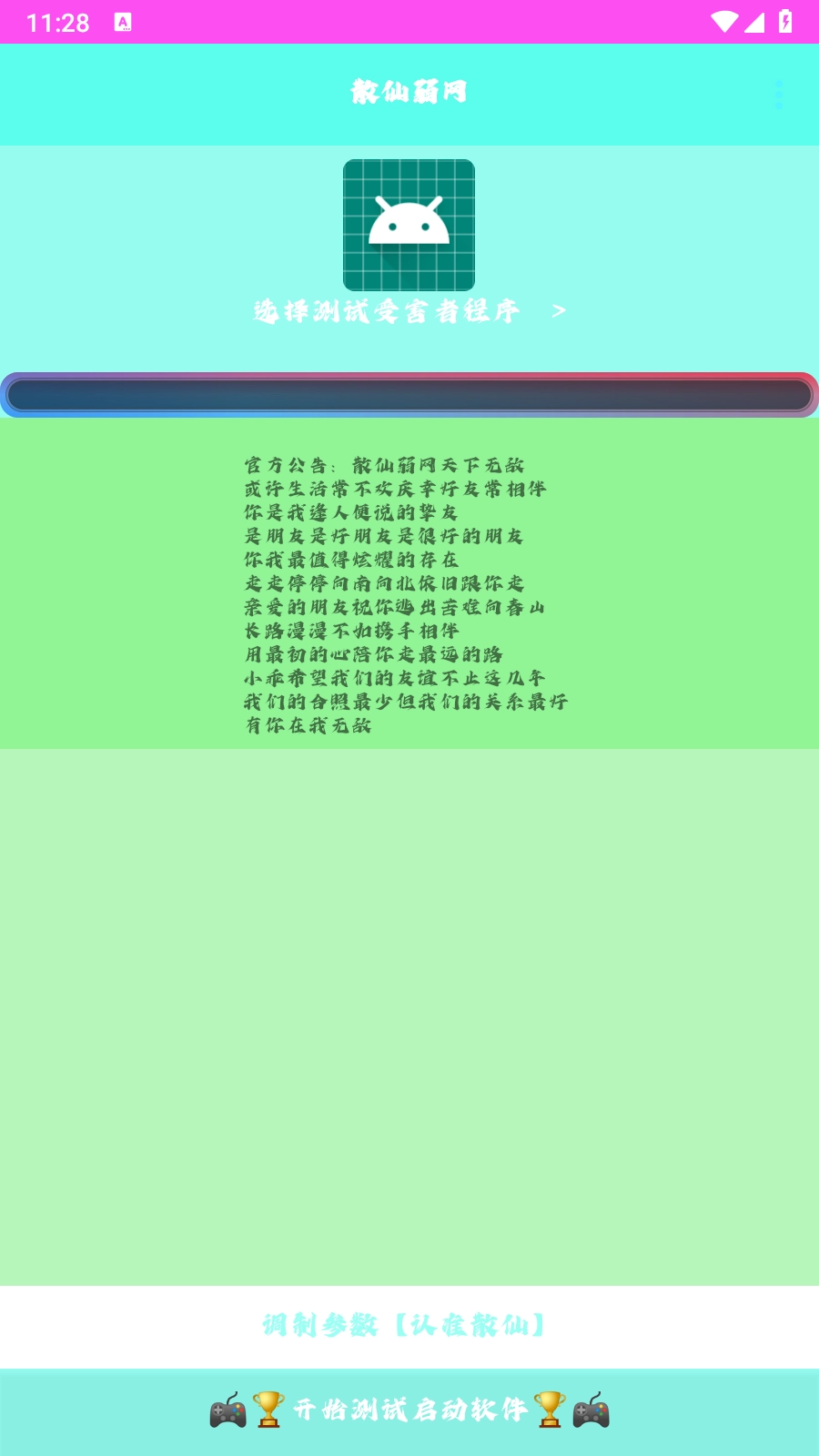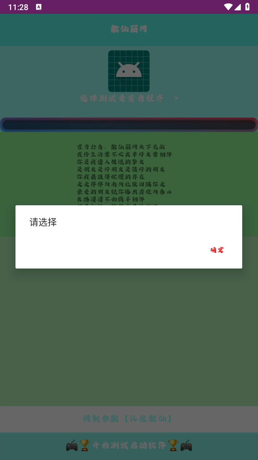 1. 开启散仙弱网App,进入应用界面后,点击顶部用于选择测试的程序。
