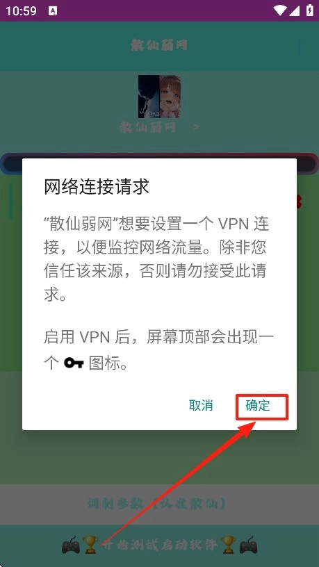 1. 打开散仙弱网App,初次使用时需开启悬浮窗功能。