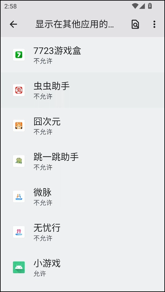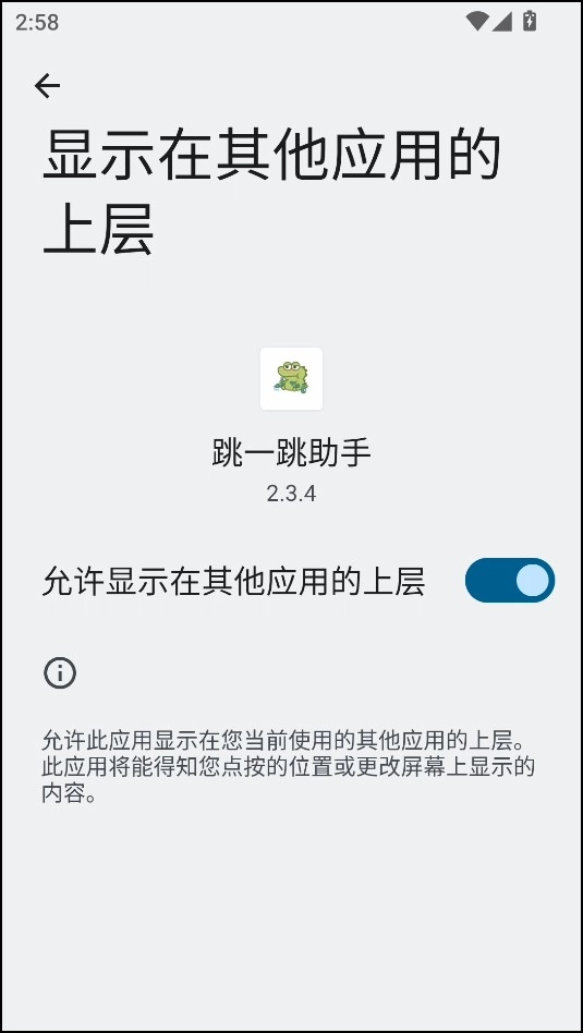 3、开启允许显示在其它应用的上层。