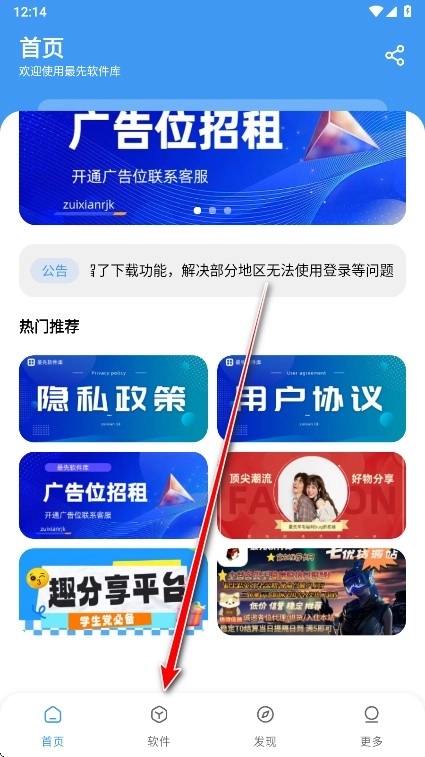 1、第一步,用户需在本站安装并开启最新版的最先软件库暑期特供版,接着点击下方的软件板块。