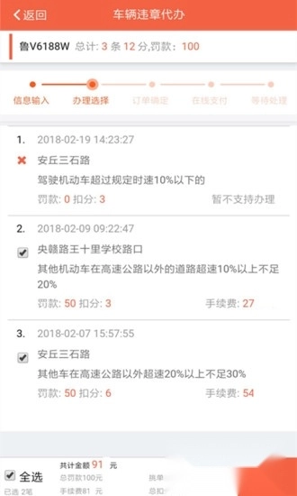 违章处理——仅支持罚款金额200元以内、单笔计分6分及以下且累计积分12分及以下的违章处理业务,此业务适用于山东省(青岛除外)的车辆。用户借助平台,能快速查询违章信息,并在线缴纳罚款,无需前往线下窗口办理,极大节省时间。