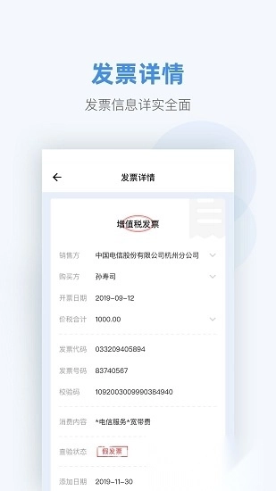 掌上发票具备快速识别发票真伪的强大能力,短短1秒就能给出结果,让用户能够迅速获取精准的发票信息,有效规避因假发票引发的财务风险。该功能不仅操作简便,而且结果精准无误,无疑是用户查验发票的不二之选。