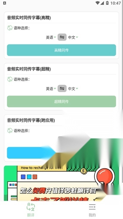 1、该软件可应用于线上课程、国际会议、外贸沟通等多种场景,能对每一句话进行精准翻译。 2、它支持一键开启字幕翻译功能,消除语言带来的观影阻碍,为用户带来无障碍的观影体验。