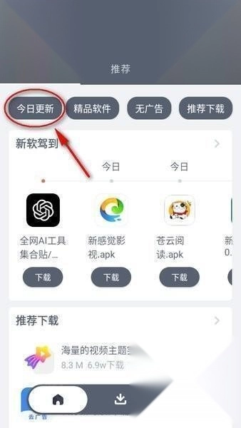 打开软件仓库的iOS版本,映入眼帘的首页便是精选专区。在此区域,能够查看每日新上线的应用,只需轻点“今日更新”,相关内容便会呈现。