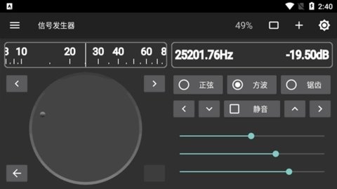 Signal Generator是一款实用的手机音频管理工具,适用于音频行业的用户,不仅可以帮助用户调试音频设备、验证音频系统,还可以在教育等领域进行实验,高精度数据算法,确保音频的精确输出,界面简单直观,操作易懂,就算是没有经验的用户也可以快速的上手。