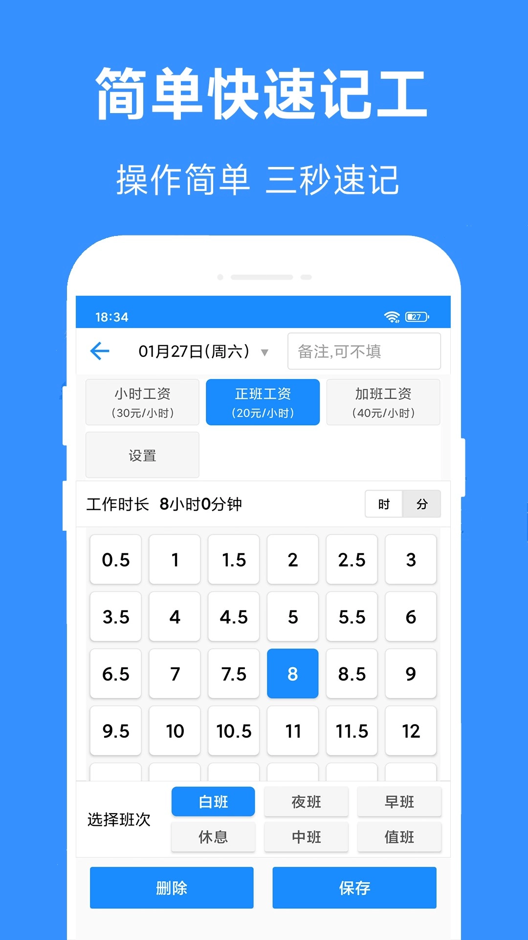 1、轻松帮助记录自己的工时和薪资,兼职专用很方便。