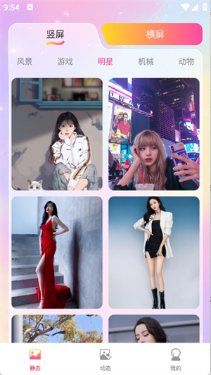 1、安装完成并进入后,在静态壁纸分类里能够查找到竖屏、横屏等图片素材。