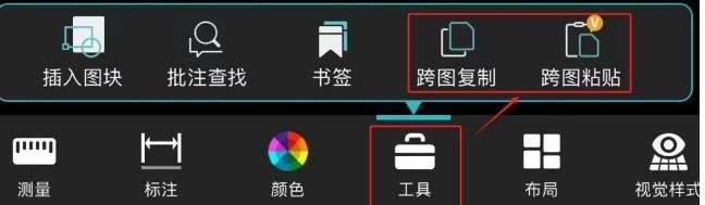 1. 启动熊猫CAD看图App,轻点页面底部的【工具】-【跨图复制】。